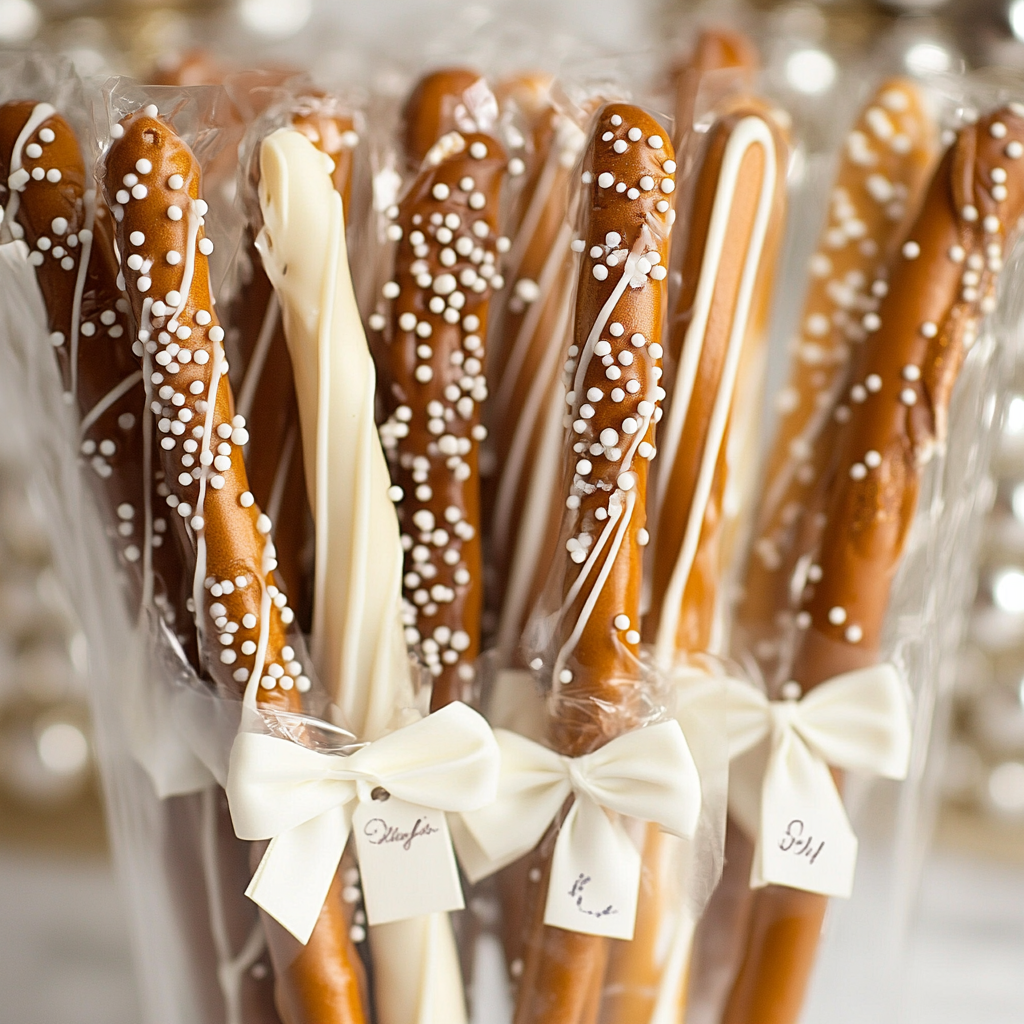 For a treat that balances sweet and salty, chocolate-covered pretzels are a classic choice. Dip them in milk or white chocolate and decorate with sprinkles or drizzle.