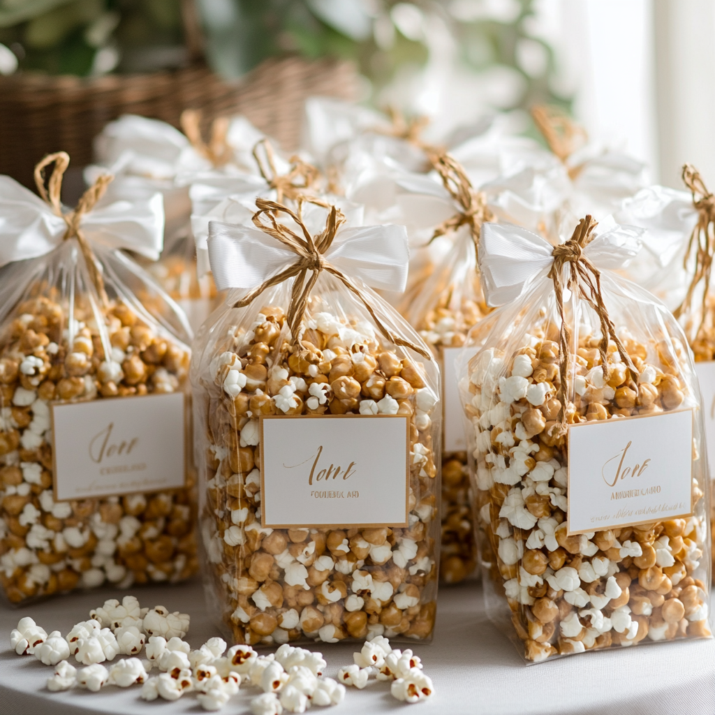 Popcorn might not scream “classic” at first glance, but when it’s drizzled with caramel or white chocolate, it’s a game-changer. Package it in chic bags with custom labels.