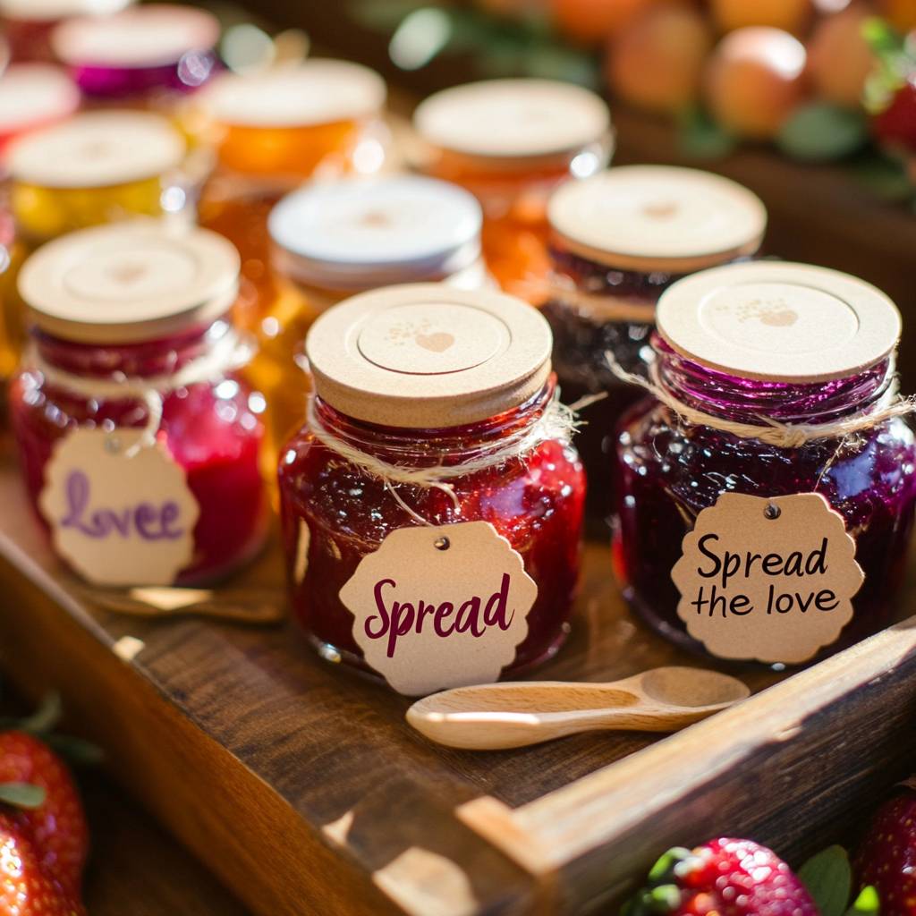 Jars of homemade jam are a sweet, nostalgic favor that guests will actually use. Go for flavors like strawberry, peach, or mixed berry.